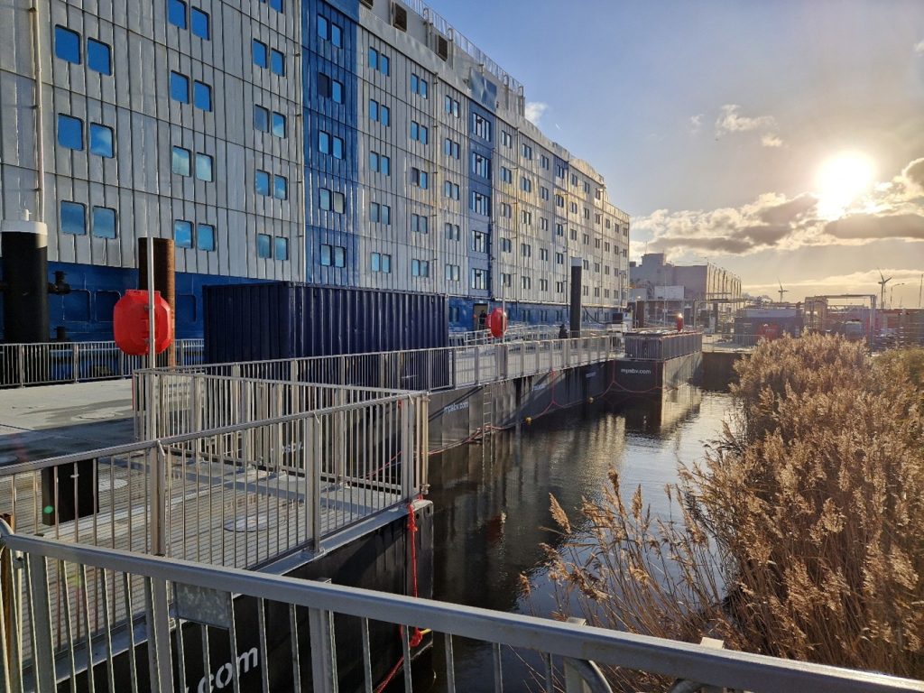 The pontoons were delivered in phases from the MPS shipyard and temporarily stored at the former ADM site on the opposite side of the North Sea Canal. Once the new mooring piles in Zaandam were completed, all pontoons were connected in various configurations and prepared within approximately three weeks. They were then towed across the canal and moored in place.